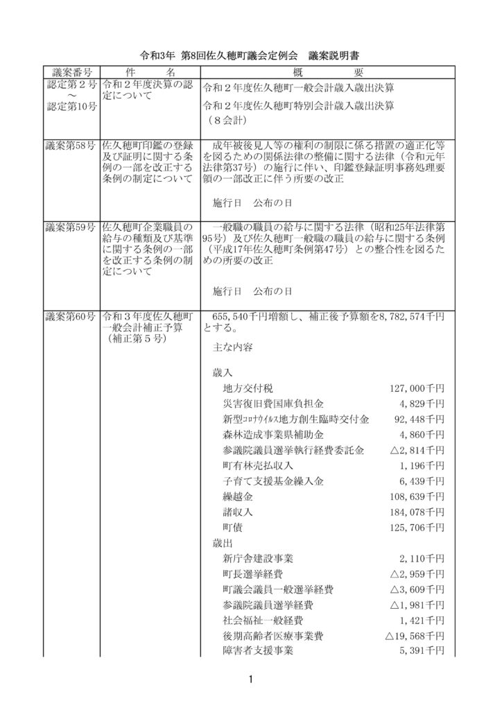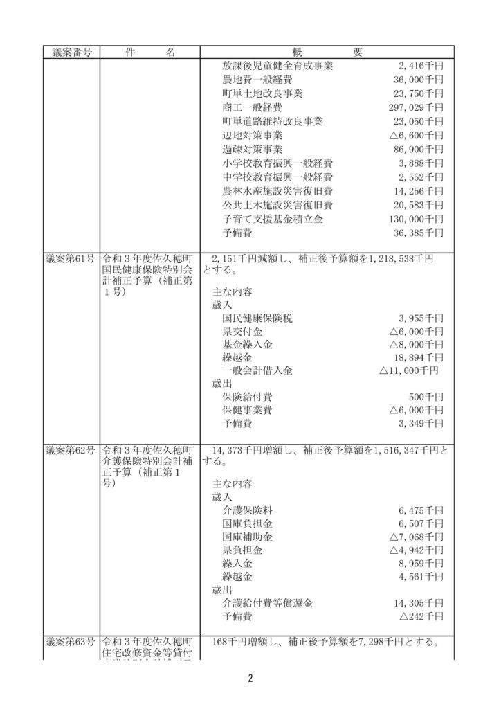 令和2年度の佐久穂町一般会計やその他の特別会計の