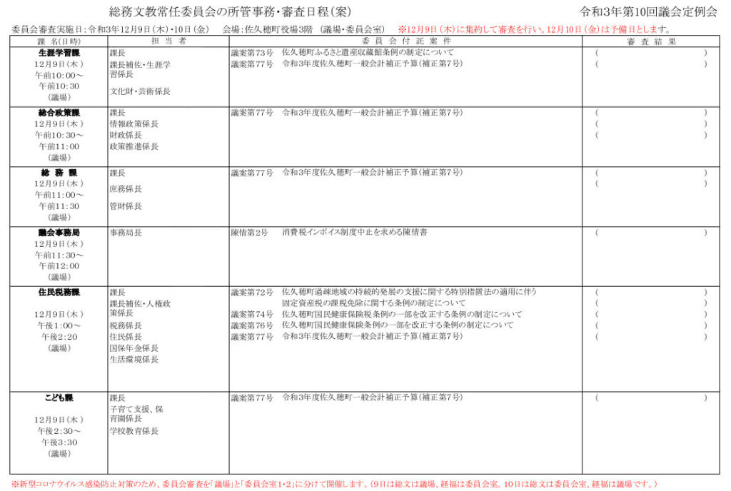 12月9日に総務文教常任委員会の審査が行われた。