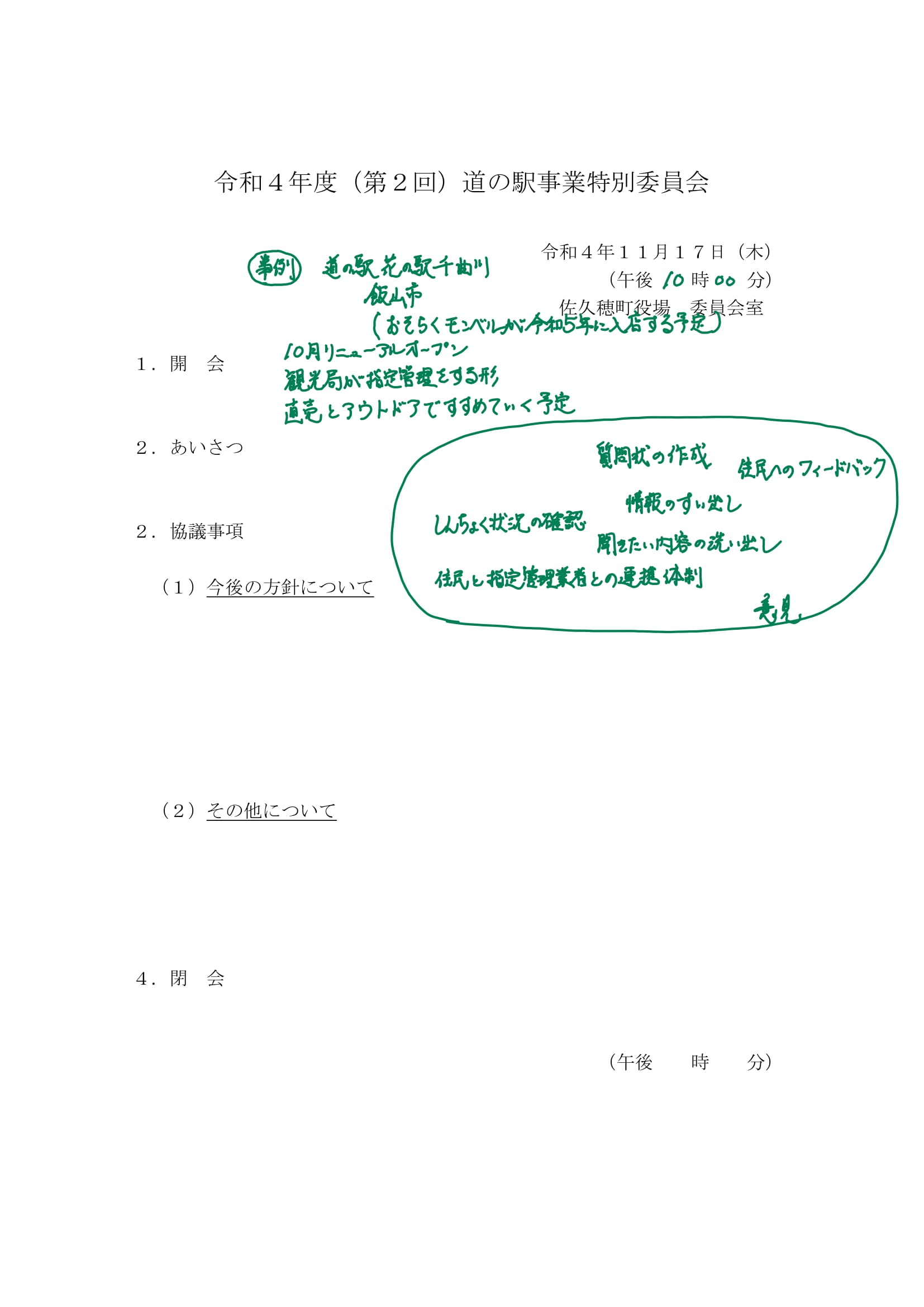 では今回の道の駅事業特別委員会のような、