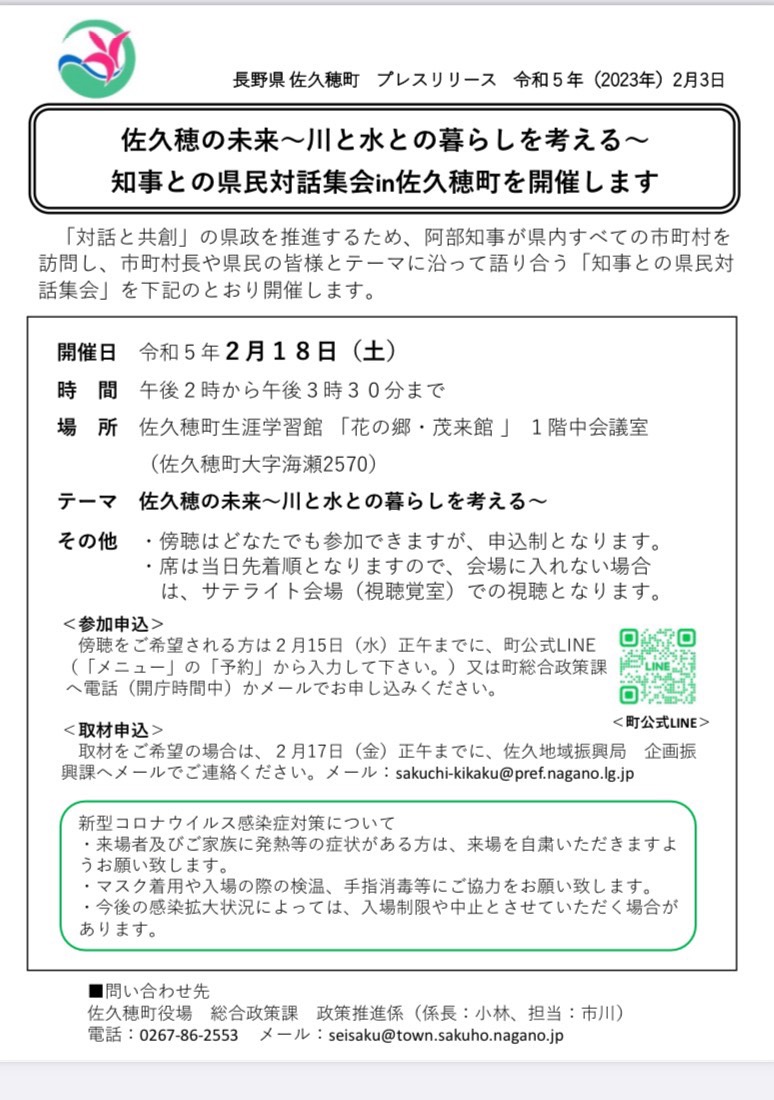 知事との県民対話集会が行われるという。