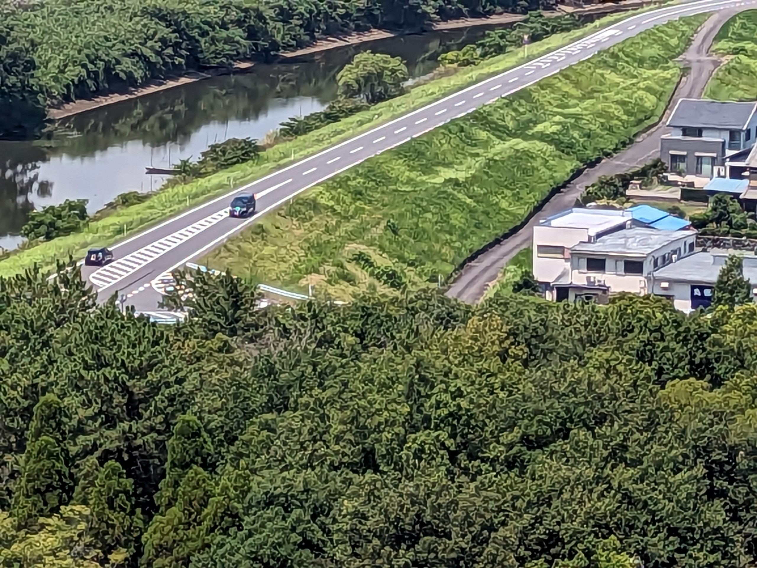 ちなみに揖斐川と堤防道路と民家の写真。