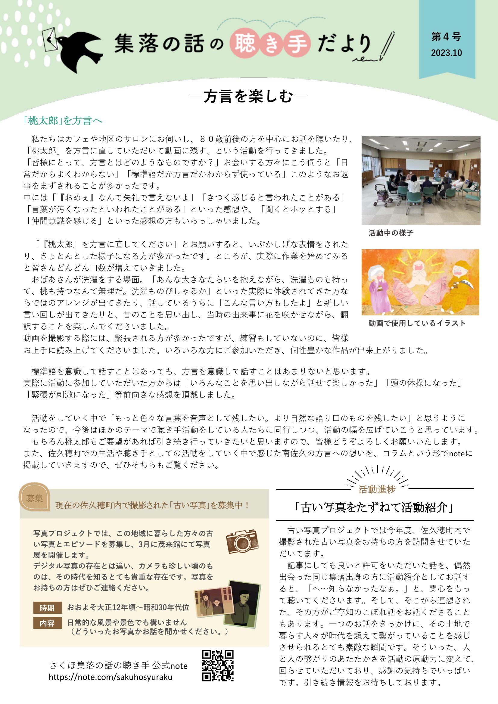 各戸配布されている集落の話の聴き手だよりなんかも、