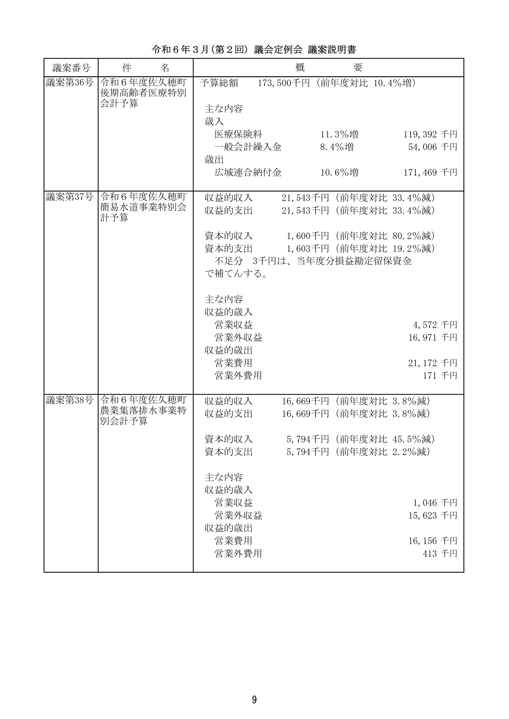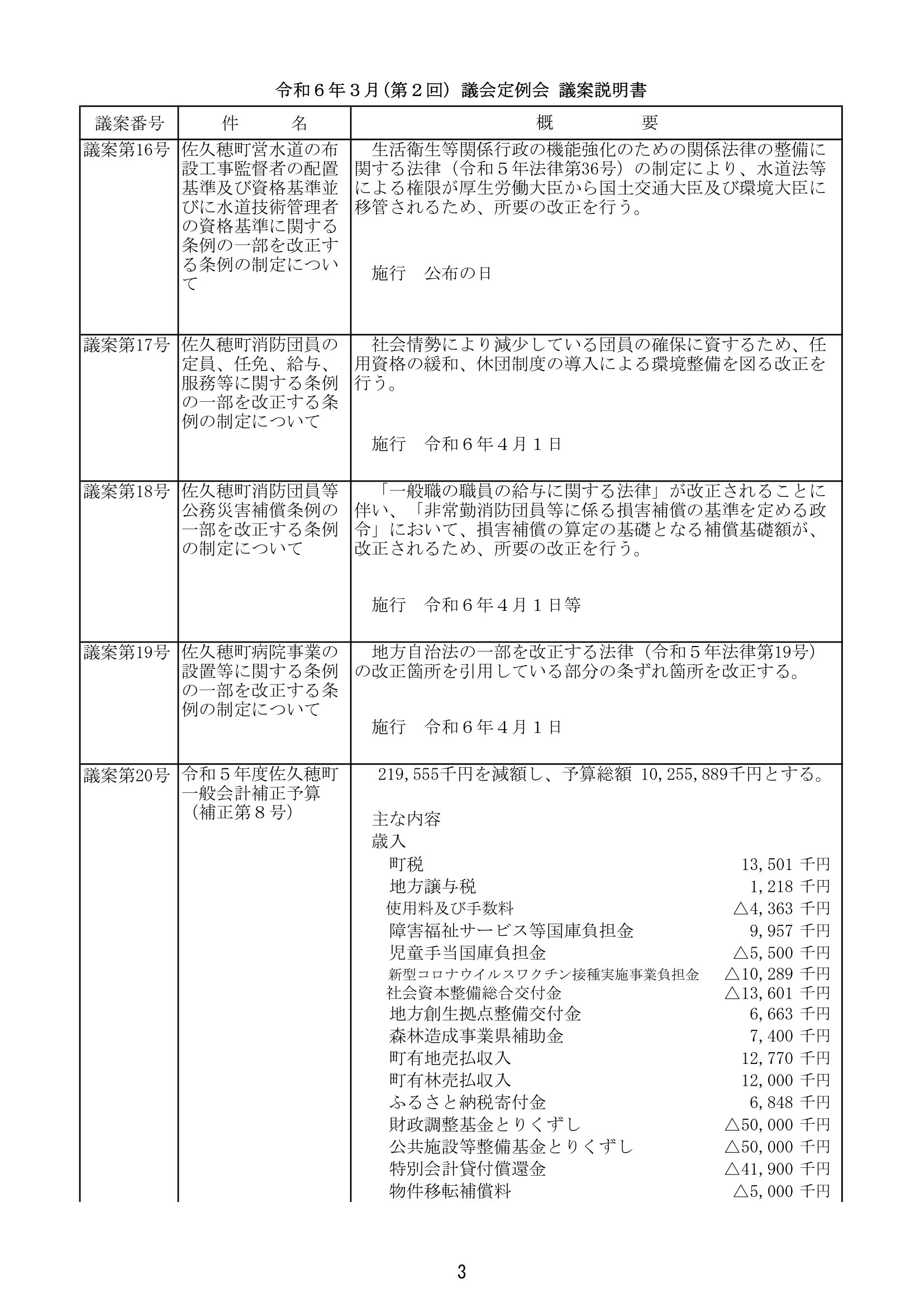 令和6年3月定例会開会と議案説明と議案資料!