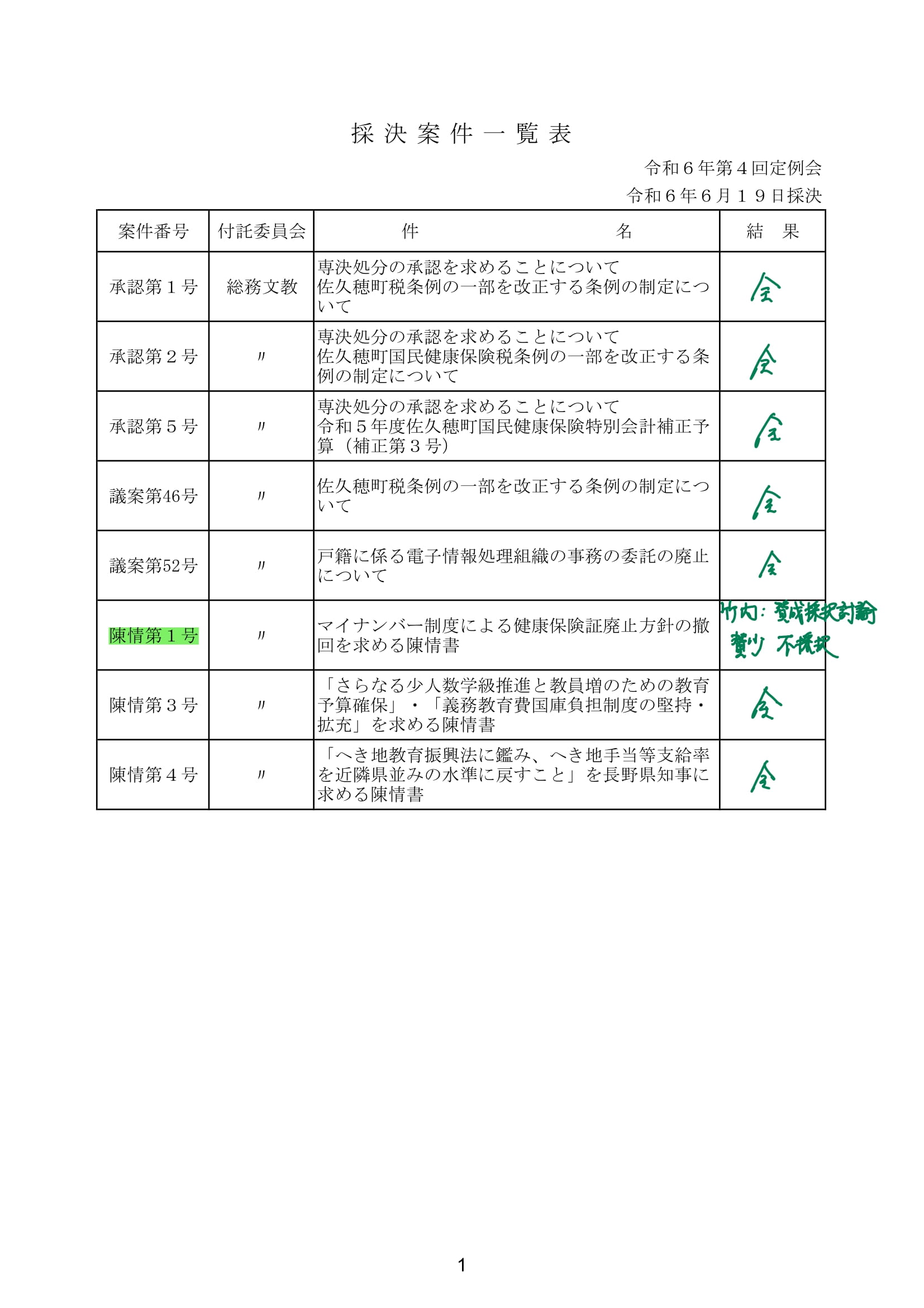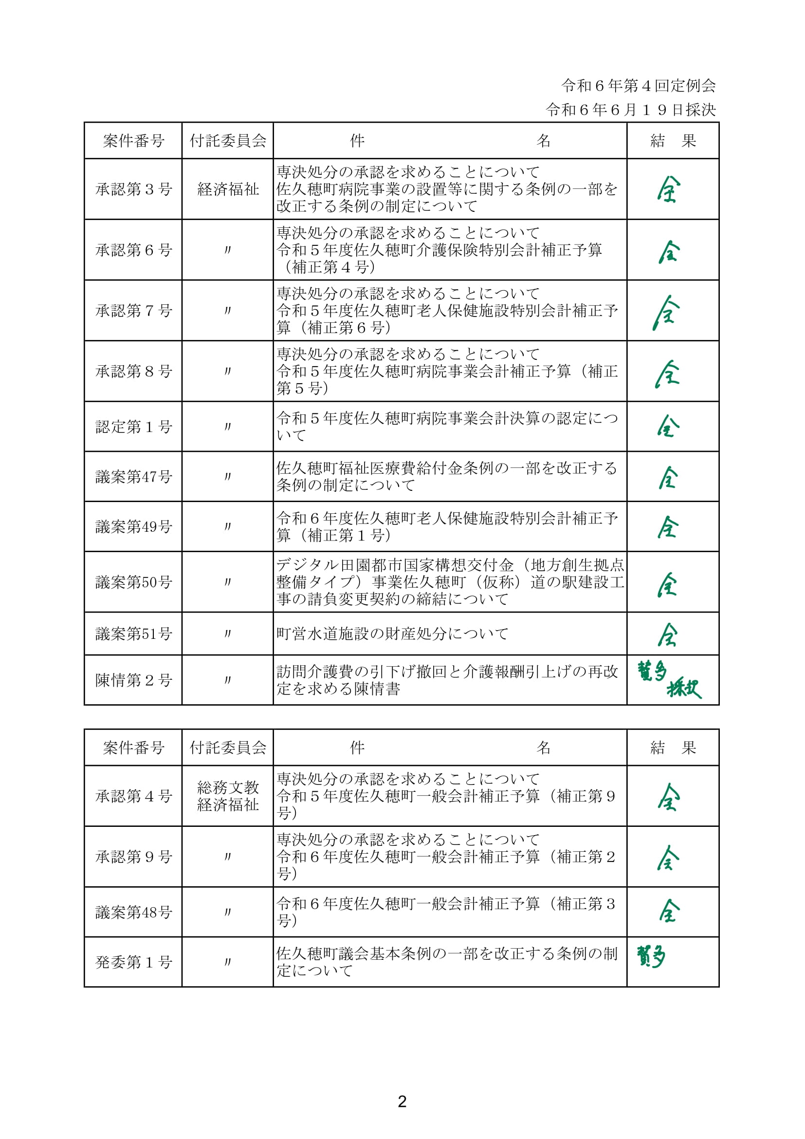 令和6年6月定例会採決結果!