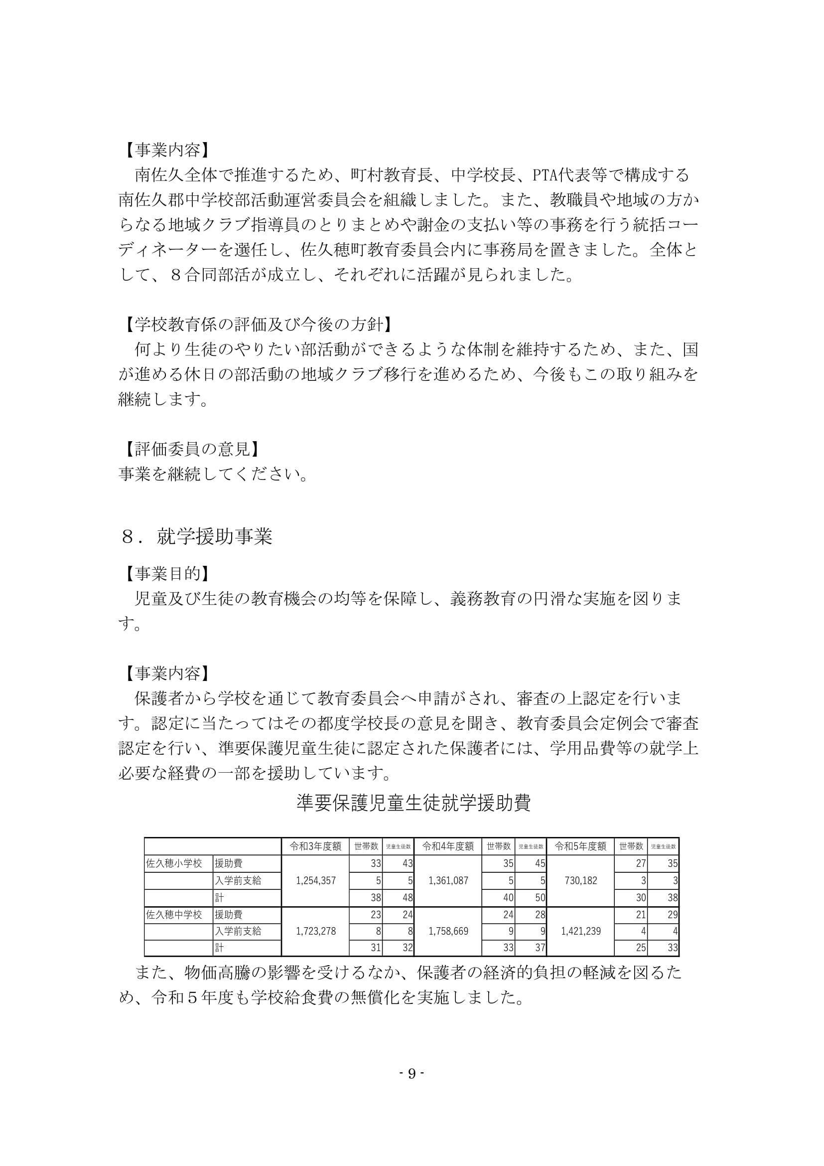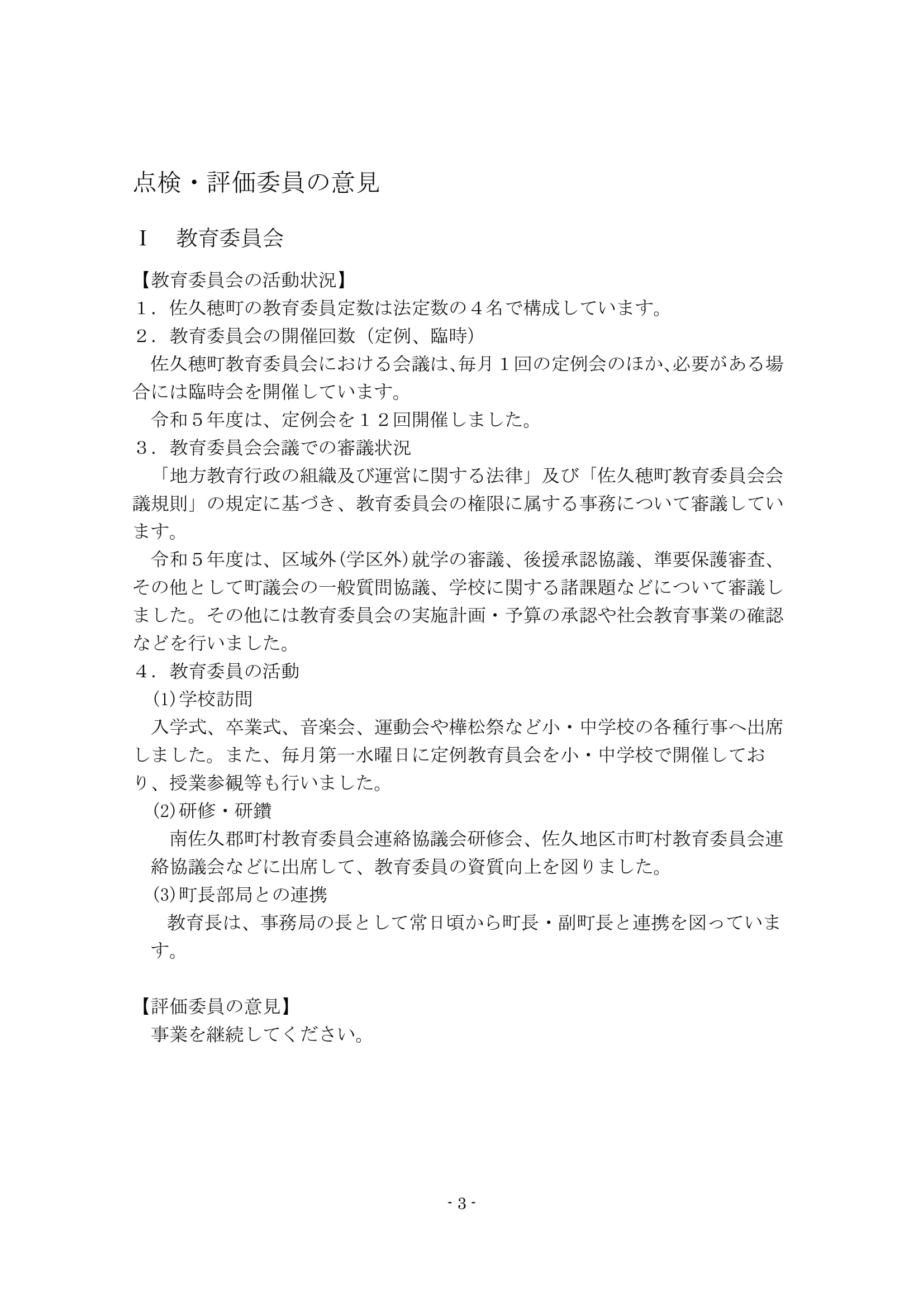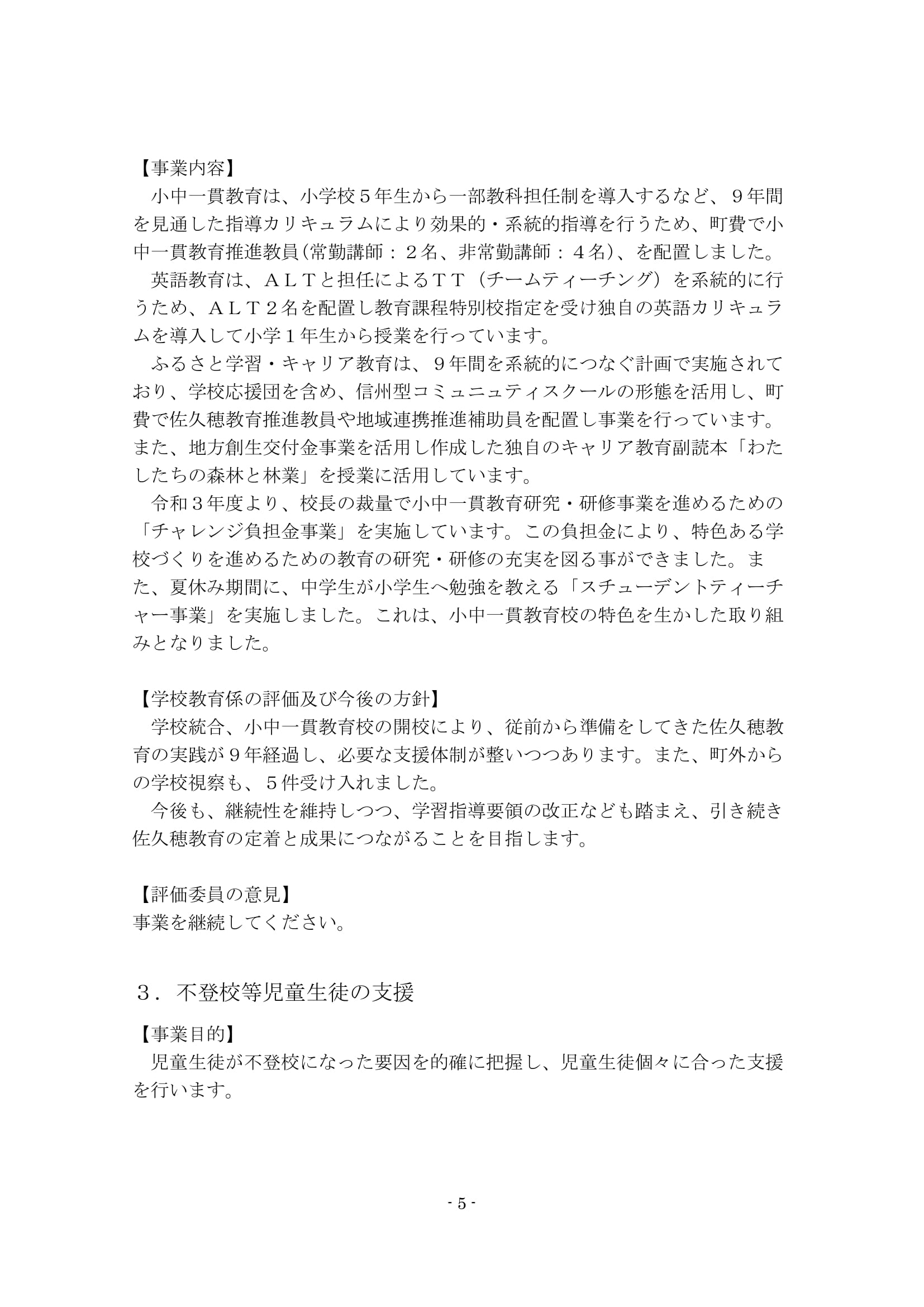 令和5年度佐久穂町教育委員会による点検評価報告書!