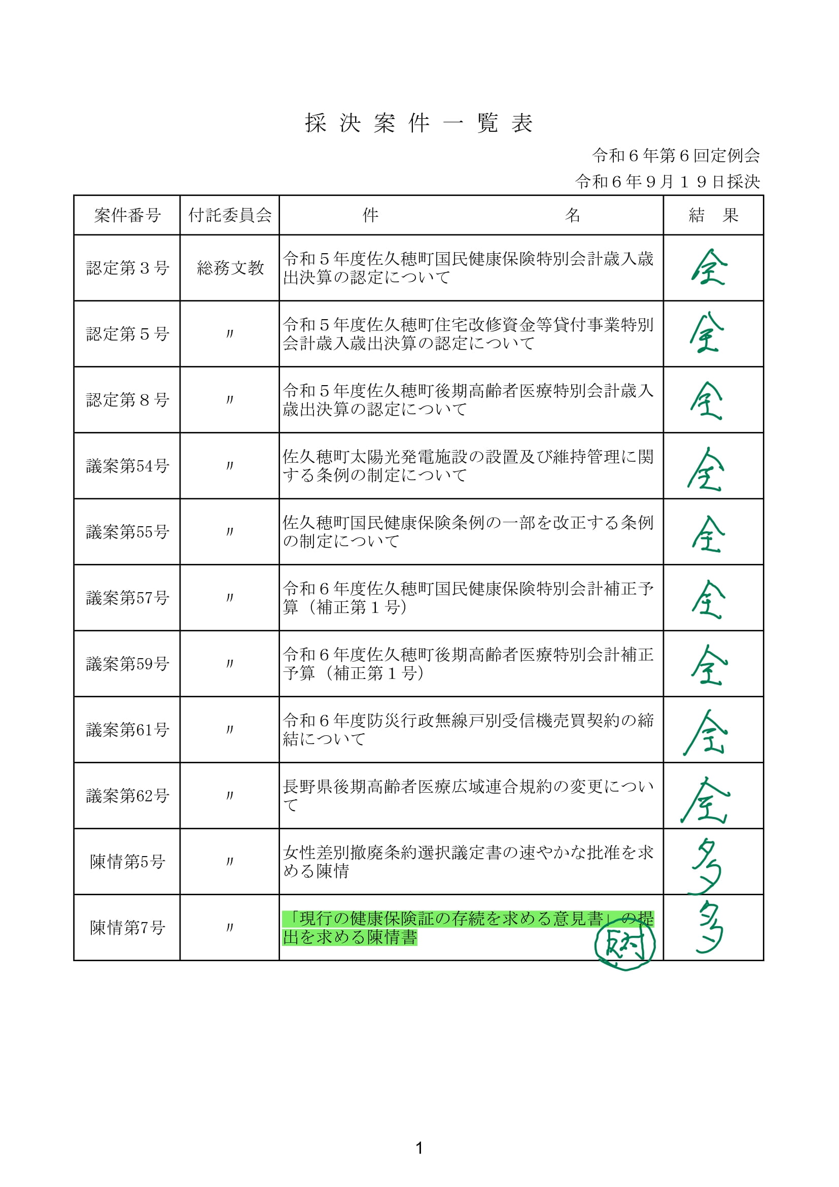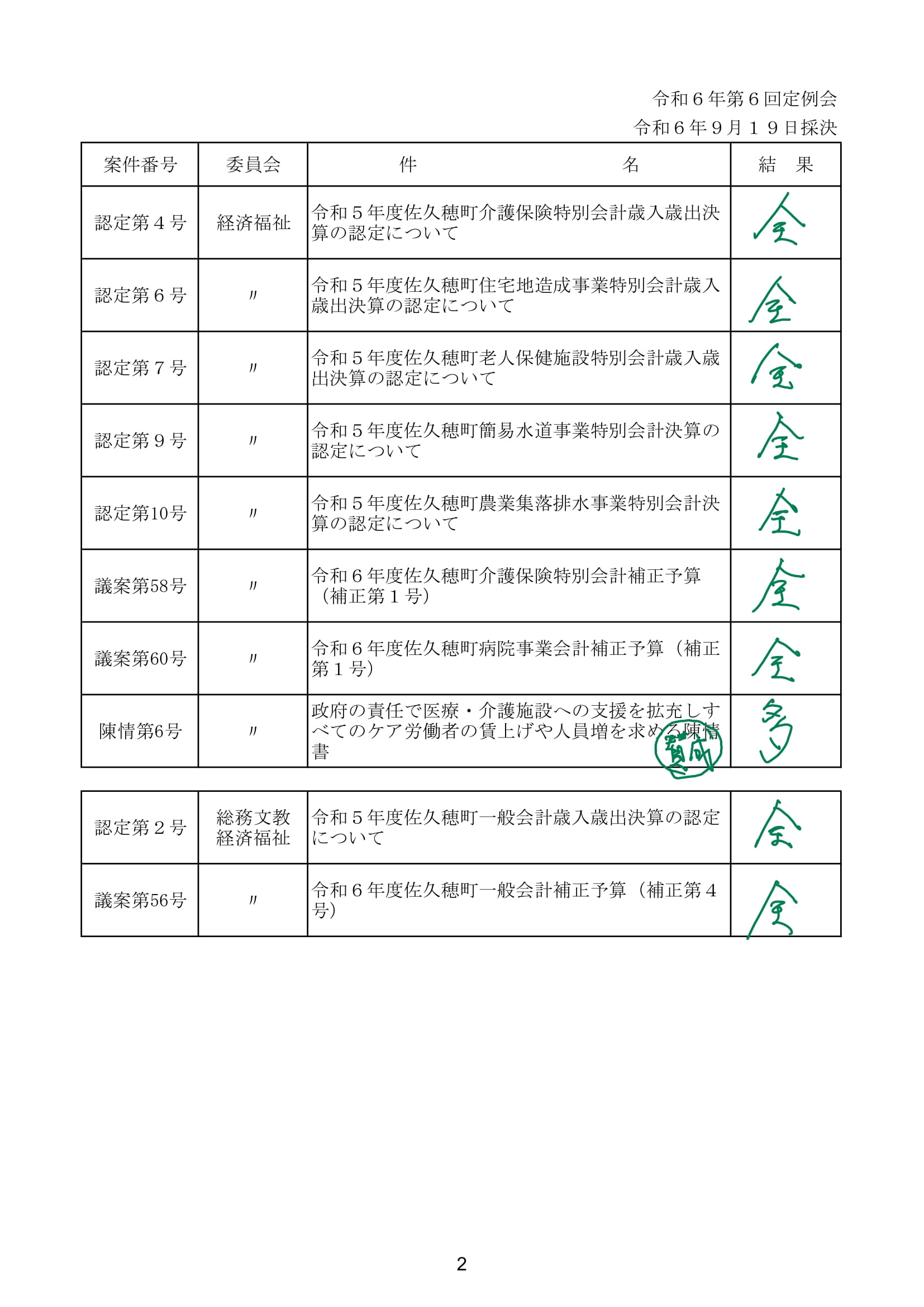 全は全員賛成で可決・採択・承認。