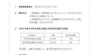 1月7日に令和7年度高等学校入学志願者数の第2回予定数調査が出された。ようするに、12月段階でどの高校に出願するか・・・のおおよその数がわかるようにするためのものだ。以前・・・私が会社員として塾講師をしていたころは、こんな調査はなかったが、...